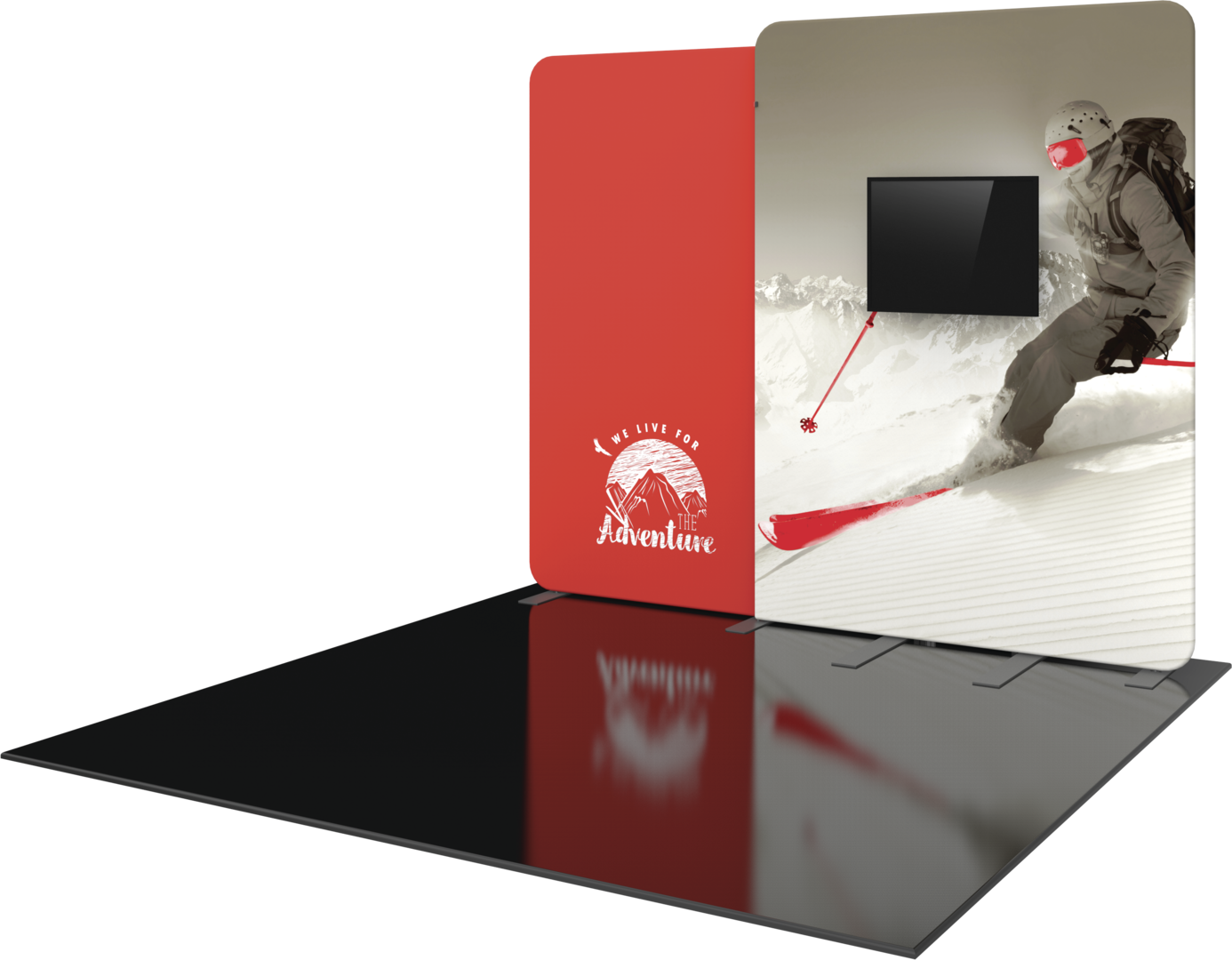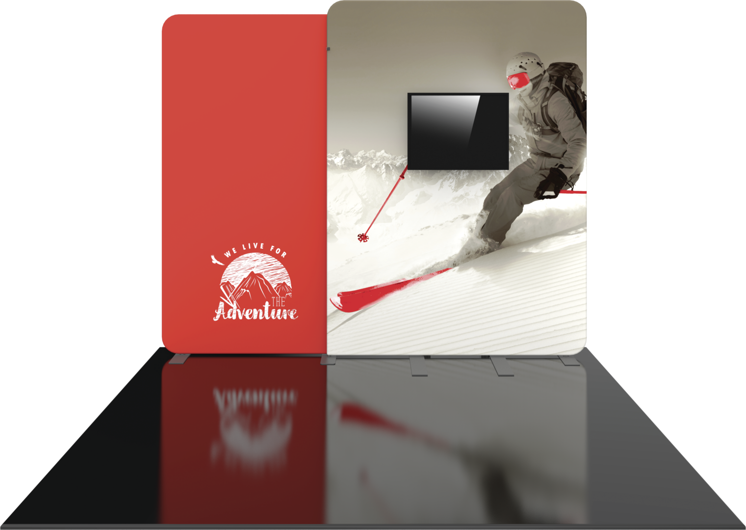 Formulate® Designer Series 10ft Fabric backwall Kit 10 has unique stylistic features and shapes, is portable, and is easy to assemble. The two aluminum tube frames features spigot connections and zipper pillowcase fabric graphics. The curved corners create a soft appearance that draws the eye, and the integrated monitor mount makes it easy to incorporate digital messaging into the backwall. Designer Series Kit 10 comes in three portable, wheeled transit cases for easy storage and transport. Assembly is easy - simply connect the tubes, pull the pillowcase fabric graphics over the frame, and zip.