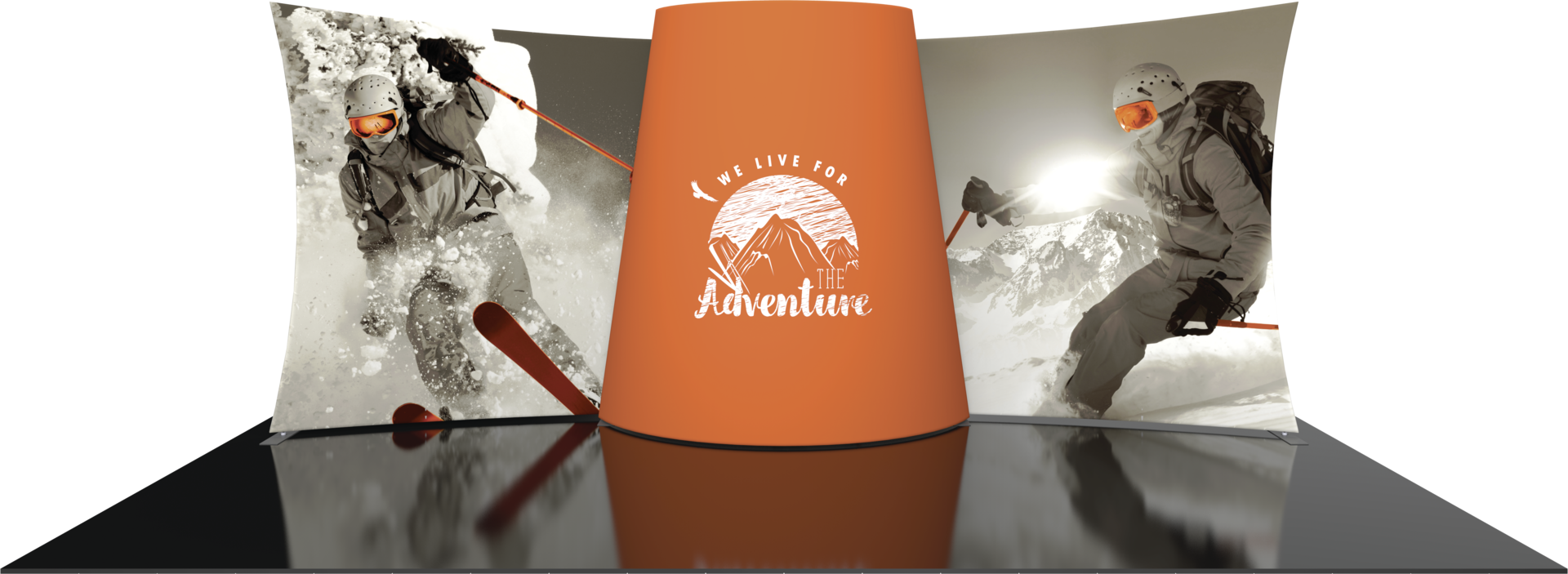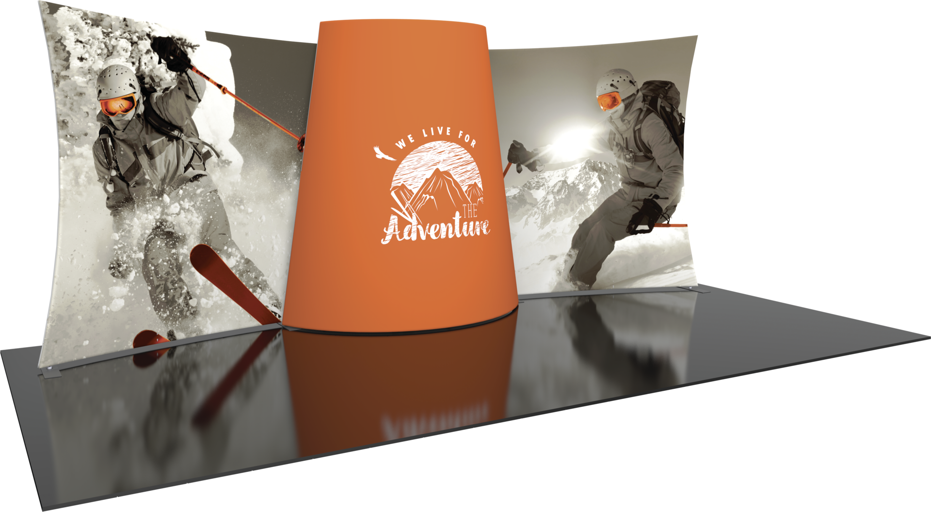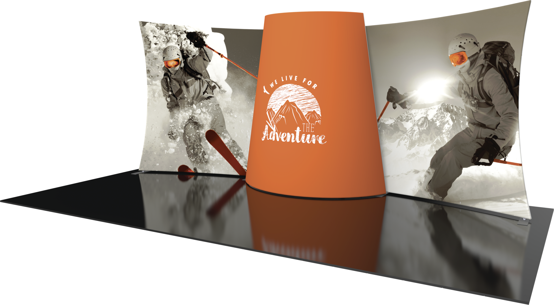 Formulate® Designer Series 20ft Backwall Kit 03 is designed to provide three areas for messaging and branding with a unique and stylish appearance. The kit includes two aluminum tube frames, and two zipper pillowcase fabric graphics. Simply connect the simple tube frames, pull the pillowcase fabric graphic(s) over the frame, and zip.