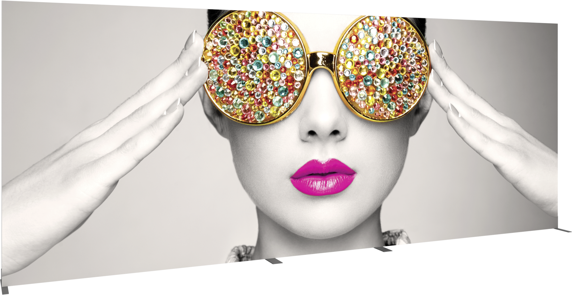 - One large, seamless single or double-sided SEG push-fit fabric graphic