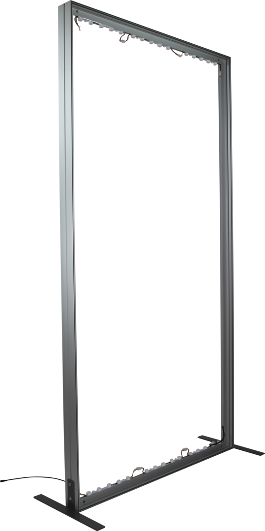Vector Frame™ fabric light box Rectangle 01 features durable 100mm aluminum extrusion frames, push-fit backlit fabric graphics and LED edge lighting, and measures 36.3"W x 47.49"H . Single and double-sided graphic options are available. LED lights to come adhered to the frame, making set-up as simple as assembling the frame, applying the push-fit graphics, and plugging in the electrical cord! Vector Frame Light Box R01 is ideal for use in retail, event, corporate, and trade show environments as an illuminated messaging solution.