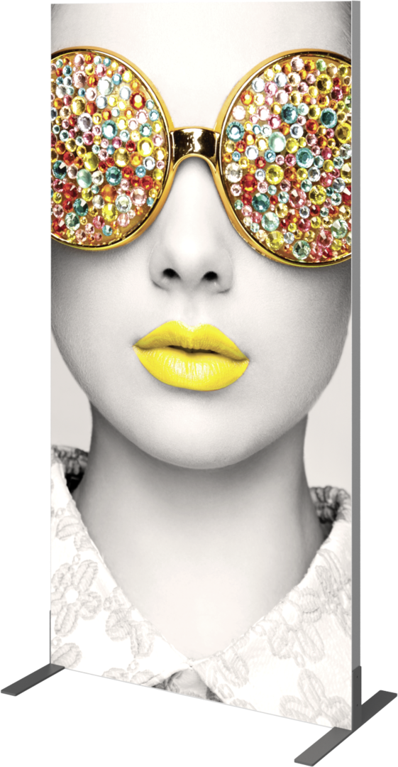 Vector Frame™ fabric banner R02 is a modern, extrusion-based fabric graphic banner display measuring 36.3"W x 71.12"H. The 2" aluminum extrusion frames are easy to assemble and disassemble and come with the choice of single-sided or double-sided push-fit SEG fabric graphic murals. Vector Frame banner R02 can be used to display messaging or art in a retail, corporate, event, or tradeshow environment and more.