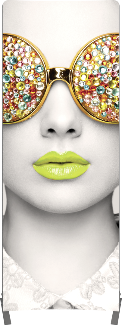 Vector Frame™ curved fabric banner 01 is a modern, extrusion-based fabric graphic banner display measuring 39.33"W x 94.74"H that combines 50mm aluminum extrusion frames with push-fit fabric graphics. Vector Frame Curved fabric banner 01 is a versatile single or double-sided banner, back wall, or interior display. Use as a concave or convex shape for increased versatility.