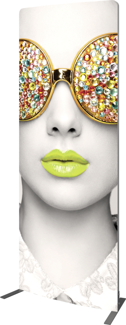 Vector Frame™ curved fabric banner 01 is a modern, extrusion-based fabric graphic banner display measuring 39.33"W x 94.74"H that combines 50mm aluminum extrusion frames with push-fit fabric graphics. Vector Frame Curved fabric banner 01 is a versatile single or double-sided banner, back wall, or interior display. Use as a concave or convex shape for increased versatility.