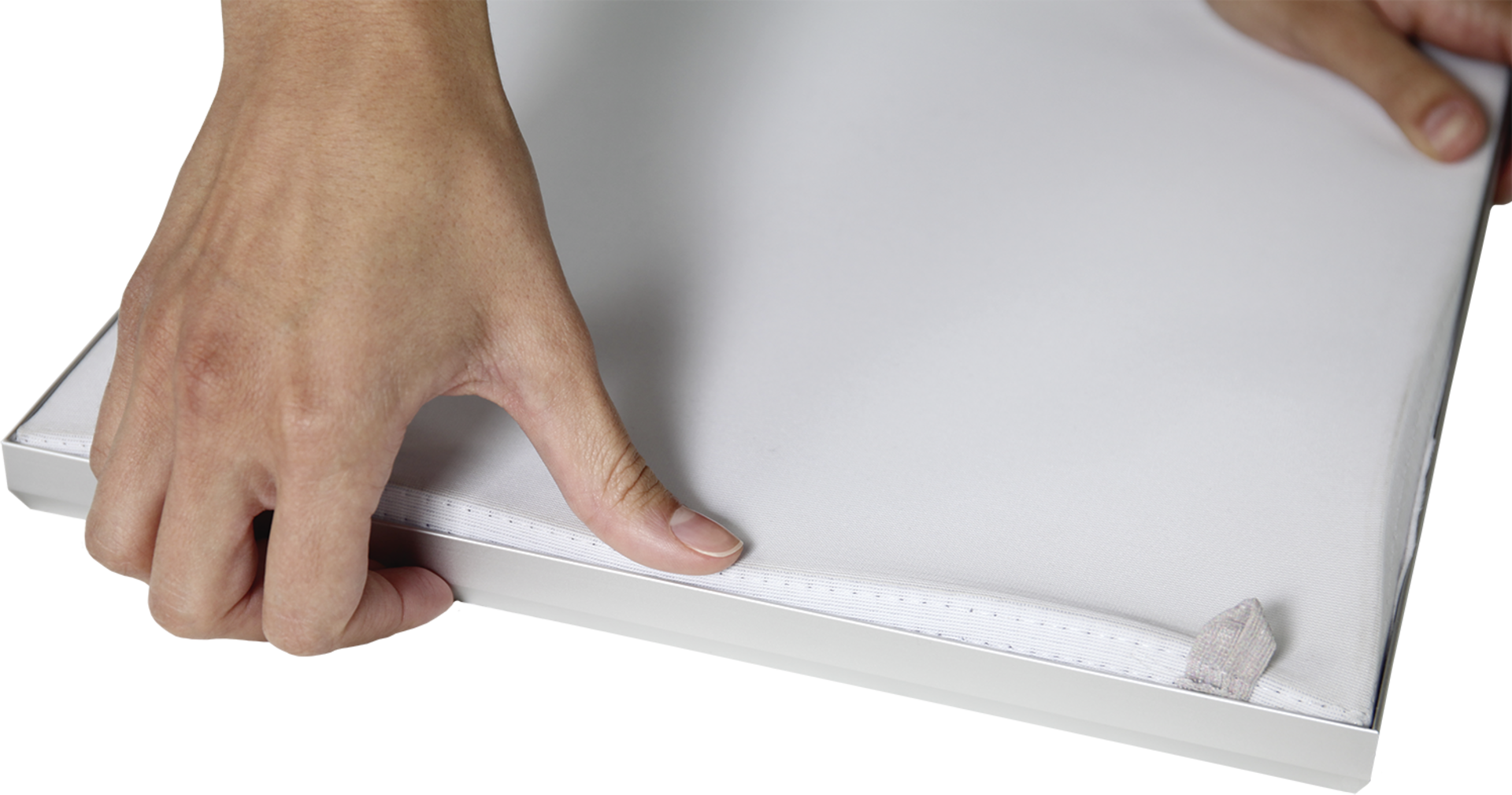 Vector Frame™ Edge S04 is a 47.24"W x 47.24"H square fabric poster display that combines durable, slim, lightweight, less than 1" aluminum extrusion frames and easy-to-apply push-fit fabric graphics. Vector Frame Edge is an ideal poster or display solution for retail, restaurant, office and trade show environments. Kit includes hardware, assembly tool and fabric graphic. Custom frame sizes are available.