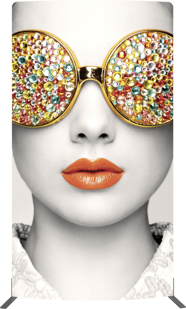 Vector Frame™ curved fabric banner 02 is a modern, extrusion-based fabric graphic banner display measuring 56.75"W x 94.74"H that combines 50mm aluminum extrusion frames with push-fit fabric graphics. Vector Frame Curved fabric banner 02 is a versatile single or double-sided banner, back wall, or interior display. Use as a concave or convex shape for increased versatility.