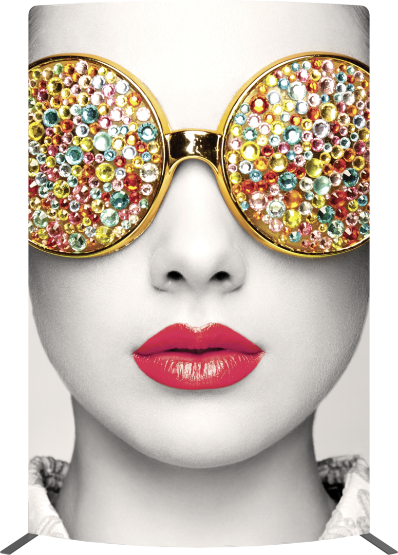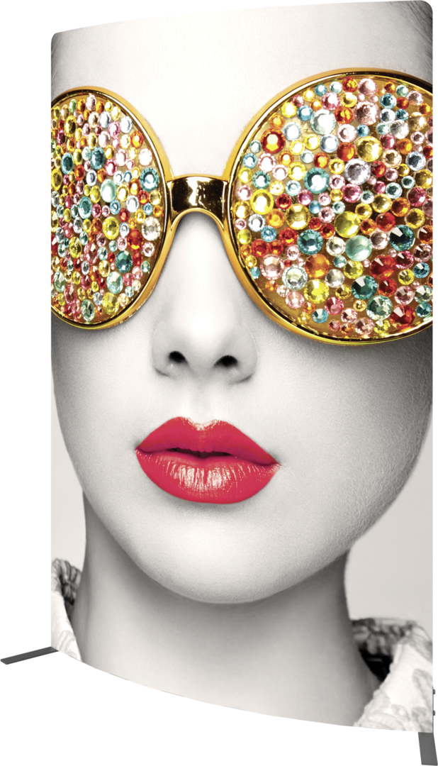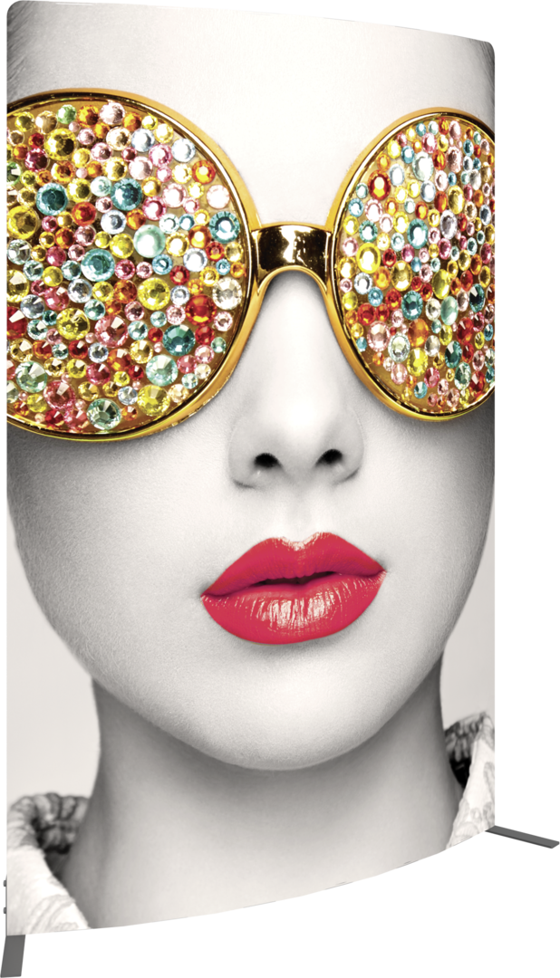 Vector Frame™ curved fabric banner 03 is a modern, extrusion-based fabric graphic banner display measuring 68"W x 94.74"H that combines 50mm aluminum extrusion frames with push-fit fabric graphics. Vector Frame Curved fabric banner 03 is a versatile single or double-sided banner, backwall, or interior display. Use as a concave or convex shape for increased versatility.