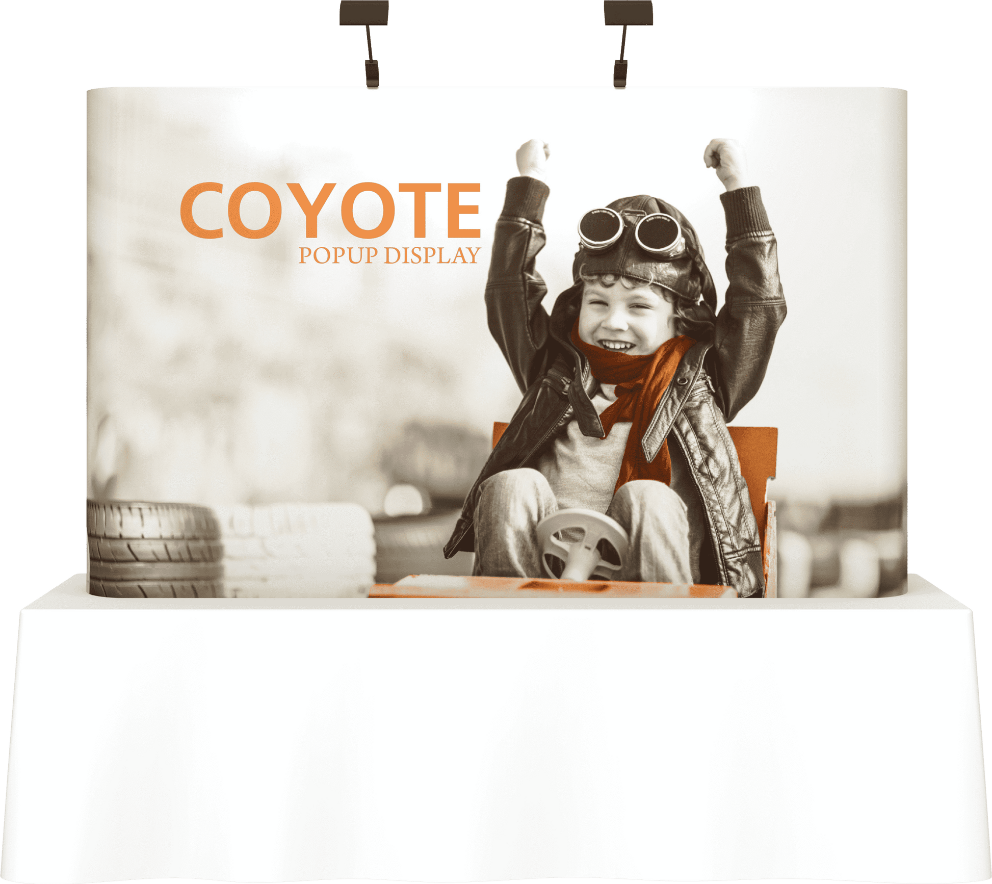 Coyote displays are offered in a variety of sizes and configurations, ranging from 4ft tabletop units to 10ft full height displays available in curved or straight systems, and larger serpentine curved, horseshoe, and gullwing shaped systems. Frames are finished with your choice of either captivating graphic mural panels or versatile hook and loop-friendly fabric panels.