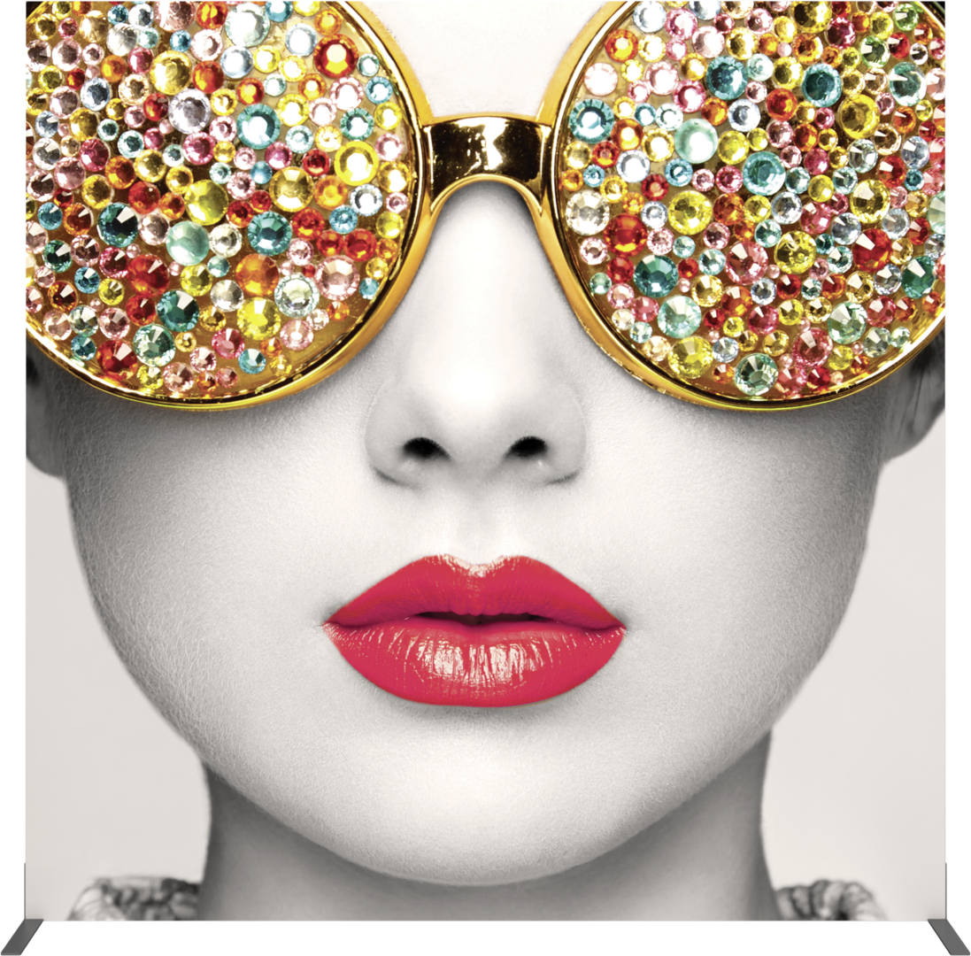 Vector Frame™ fabric banner S04 is a modern, extrusion-based fabric graphic banner display measuring 95.35"W x 94.74"H. The 2" aluminum extrusion frames are easy to assemble and disassemble and come with the choice of single-sided or double-sided push-fit SEG fabric graphic murals. Vector Frame banner S04 can be used to display messaging or art in a retail, corporate, event or trade show environment and more.