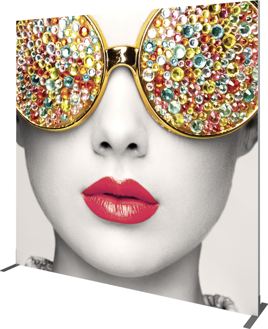 Vector Frame™ fabric banner S04 is a modern, extrusion-based fabric graphic banner display measuring 95.35"W x 94.74"H. The 2" aluminum extrusion frames are easy to assemble and disassemble and come with the choice of single-sided or double-sided push-fit SEG fabric graphic murals. Vector Frame banner S04 can be used to display messaging or art in a retail, corporate, event or trade show environment and more.